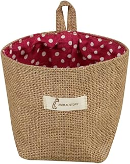 Lumanuby 1pcs Sac de Rangement Modèle de Faon Sac de Transport Coton Lin Tissu Pot de Fleurs Petit Sac Suspendu Jute Petit Rayures Panier de Rangement Motif de Point Rouge 14 * 12.5CM