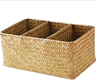 luning Panier en Osier Paille Naturelle Rectangulaire Bureau Jardin Panier De Rangement Tissé Panier Étagères Panier en Osier Panier À PiqueNique Panier