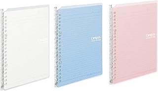 Kokuyo Campus Lot de 3 classeurs fins à porter avec anneaux intelligents A5 20 anneaux Rose clair, bleu clair et transparent A5