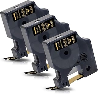 3x Labelwell 12mm Remplacement Rubans Compatible pour DYMO 45024 Or sur Noir pour DYMO LabelWriter 450 Duo Turbo LabelManager 160 280 210D 360D 420P LabelPoint 150 250 Rhino 4200 6000 Étiqueteuse