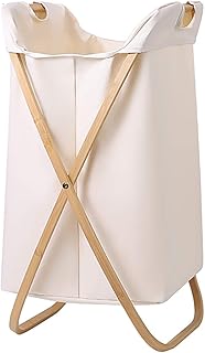 Virklyee Panier à Linge Pliable en Bambou 60L Panier à Linge Corbeille à Linge Coffre à Linge avec Sac Amovible et Lavable bac à Linge Pliable (Noir)