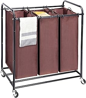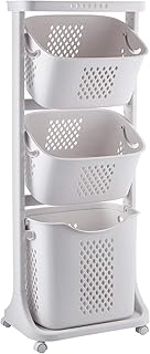Yorbay Chariot à Linge, Panier à Linge, Corbeille À Linge avec 3 Paniers Amovibles avec roulettes