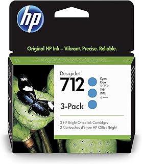 3ED77A Lot de 3 Cartouches d'encre Authentiques HP 712 Cyan 29 ML avec Encre HP d'origine, pour Traceurs Grand Format DesignJet T650, T630, T250, T230 et Studio et tête d'impression HP 713 DesignJet