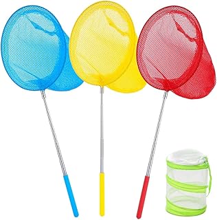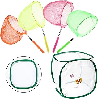 MMTX Lot de 4 Enfants Filets de Papillon télescopiques Filets de pêche et Cage d'Habitat de Papillon Pliable pour Capture de Poissons Papillon Activités de Plein Air