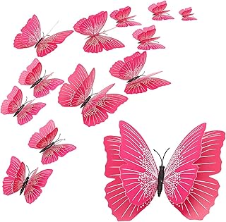 Autocollant mural papillon 12 pièces, papillon magnétique 3D à deux couches, autocollants muraux papillon simulation pour la maison, la cuisine et le jardin (Rose)