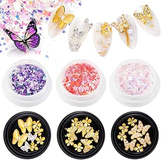 EBANKU 3 pcs Papillon Nail Art Strass + 3 pcs Manucure Papillon Paillettes,3D Alliage Papillon Arc Zircon Nail Gems, Acrylique Laser Autocollants Papillon Nail Art Manucure DIY Décoration
