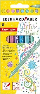 Eberhard Faber 551009 – Feutres à paillettes dans 8 couleurs pastel intenses, épaisseur de la mine 3 mm, lavables dans un étui en carton, pour décorer, dessiner, bricoler et écrire