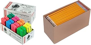 STABILO BOSS Big Boss Lot de 48 surligneurs 6 jaunes, 6 bleus, 6 verts, 6 rouges, 6 turquoises, 6 orange, 6 roses et 6 violets & Amazon Basics Boîte de 150 crayons à papier prétaillés HB n°2