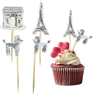 WIKI FIESTA Paris Tour Eiffel Arc de Triomphe Cupcake Décoration Gâteau Anniversaire - Cupcake Toppers, Deco Anniversaire Mariage, Fête Parisienne, Candybar (Paquet de 24)