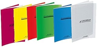 CONQUERANT Cahiers Classique 24x32cm Grands Carreaux Seyès 96 Pages Agrafées Couverture Polypro coloris aléatoire - Lot de 10