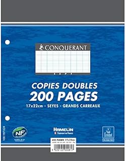 Conquérant 92056 Copie Double Sept Séyès Perforée 2 Trous blanches, 1 70 x 220 mm 200 Feuilles