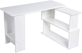 Pissente Bureau Angle d'Ordinateur Portable en Forme de L, Bureau Poste de Travail avec Étagère de Rangement Bureau de Coin Rotatif à 360 Degrés pour Maison Bureau Accueil(Blanc)