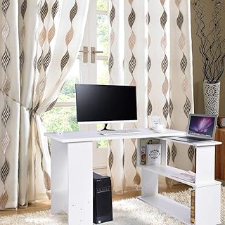Zerone Bureau Informatique d'angle pour Ordinateur, Table Informatique Meuble de Bureau avec 2 Etagères de Rangement Rotation à 360 Degrés en Forme de L Table en Bois (Blanc)