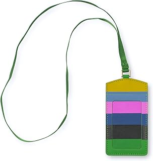 Kate Spade New York ID Badge Holder with Lanyard, Vegan Leather Name Tag Case with Clear Window and Card Slot for Work/School/Travel, Enchanted Stripe