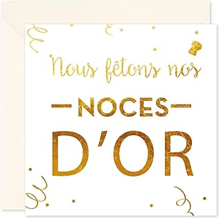 8 Cartes Invitation Anniversaire 50 ans de Mariage et 8 Enveloppes • Noces d'or • Format 14x14 cm plié • Intérieur Vierge pour Écrire • Popcarte (Pétillant)