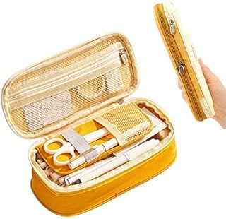 Grande capacité crayon cas pliable toile stylo sac à cosmétiques sac pochette titulaire boîte organisateur pour l'école de bureau art (Jaune)