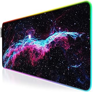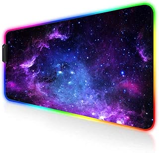 AILRINNI RGB Tapis de Souris Gaming - 350x250mm Grand Tapis de Souris XL, 12 Modes LED Lumineuse Tapis de Souris, Surface Antidérapante pour Gamer - Galaxie