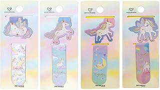 Marqueur de Page de Livre Magnétique Signets d'index de l'école Dessin Animé Licorne Magnétique Pages Clips Signets de Licorne Papeterie Signet Aimant pour la Papeterie de Lecture (4 ensembles)