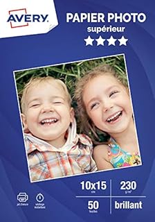 AVERY - 50 feuilles de papier photo 230g/m² brillant qualité supérieure, Format 10x15cm, Impression jet d'encre
